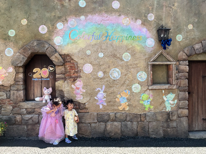 2025년은 디즈니씨의 마스코트 같은 존재, 더피와 친구들 20주년 기념의 해입니다. 파크 곳곳에는 기념 장식과 한정 굿즈가 준비되어 있고, 특히 벽에 그려진 더피&프렌즈 아트워크 존은 인생샷을 남기기 좋은 포토스팟으로 큰 인기를 끌고 있습니다.
